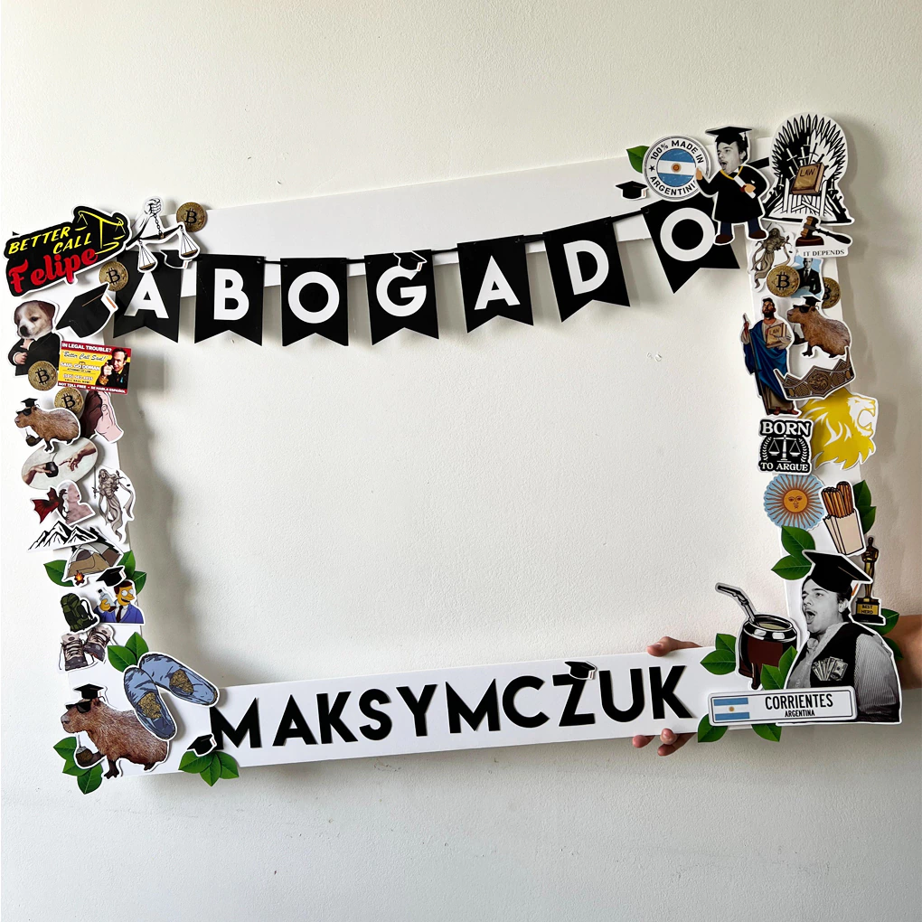 Diseñamos carteles únicos con el nombre del titulo o curso, frases internas, hashtags, emojis y todo lo que represente su último año, gustos, items que describan a el egresado, etc. Hechos con estética divertida o elegante (vos elegís), ideales para llevar al acto, usar en la recibida o sumar como recuerdo.