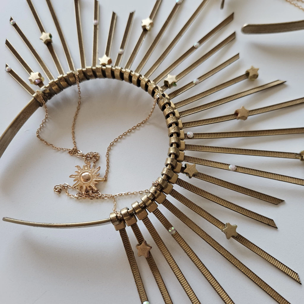 Nuestra Burning es la estrella de los festivales. Inspirada en Burning Man, tiene toda la onda para una fiesta épica. La forma de sol, las estrellitas y la cadenita la hacen única: ideal para despedidas, sesiones de fotos o salir a romperla en la pista.